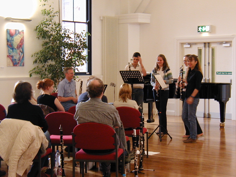 On 25th August 2005 I went to The International Clarinet & Saxophone Performance Course for a the day and a half. It also was fantastic and I had a fabulous time. The day started off with breakfast. We then had a daily warm up session before an hour or so of clarinet ensemble playing. This was followed playing a clarinet & bass clarinet duet of a piece called A Salutation for Summer just written by composer John Hubert Smith. I had a clarinet lesson with Philippe Cuper who is first solo clarinettist at the Paris Opera (Bastile and Garnier). Later in the day I also had a masterclass with Philippe working on Pierne's Canzonetta - this was an amazing and very educational experience. During the day I also had a lesson with Victoria Soames Samek. I performed Oberthur's Le Desir with Paul Chivers accompanying me at the lunchtime concert and I was very pleased with how this performance went as it was a new piece to me, plus I was playing on a new clarinet, mouthpiece and ligature! In the afternoon I also had an opportunity to play in Jeffrey Wilson's jazz group and this was great fun. In the evening I got invited to play in the evening concert in a sextet with Victoria, Jeffrey, Roger Heaton, another girl (so sorry I've forgotten her name) and Philippe. The following day I stayed to lunchtime, bought several more CD's from Victoria (Clarinet Classics) to add to my collection and played in the Klezmar group run by Jeffrey Wilson. This was also such fun. I went home on a real high!