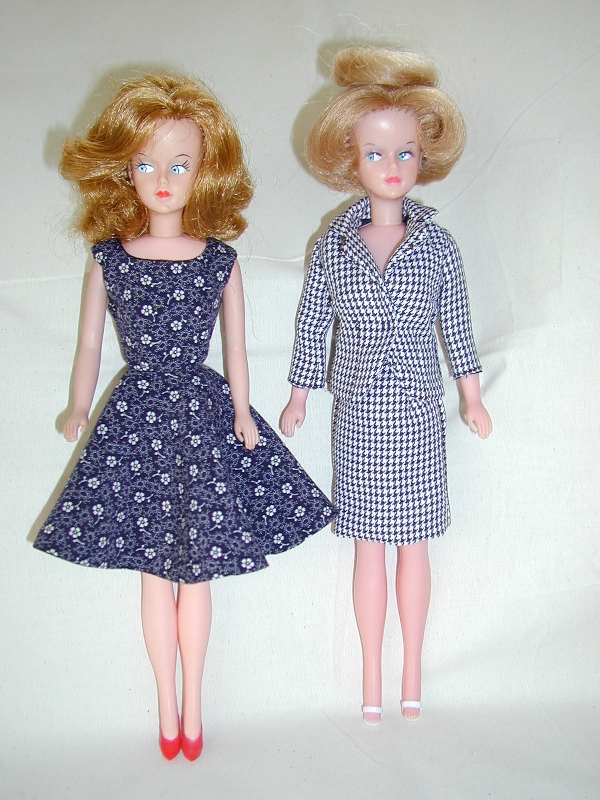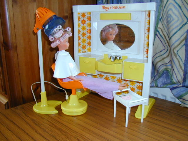 | Tressy and Other Dolls with 'Hair that Grows' Tressy (with hair that grows!) was one of my first dolls. I remember my mother ordering her for me from the back of a magazine. I was so excited when she arrived. Mine was a second edition brunette. Unfortunately, during one our many moves she went missing. Several years ago while buying a book from Ebay I came across a wonderful website all about this great doll. I subsequently bought a tressy from ebay and hence the beginning of an ever increasing collection of tressys and other fashion dolls from the same era. There were four editions of Tressy made by Palitoy and I have managed to collect one of each with several different hair colours! I also have Tressy's little sister Toots. American Character also made Tressy and I have three editions of these, plus Cricket - the AC version of Toots. Collecting their original clothing can be difficult but I have a few now, and a couple of boxed outfits. I will be eventually putting photos of these on this site. I have also made some clothing for them. Musical Mascot City Girls Cadenza Apple pie Sleeveless sun Apricot beauty I have had some fun 'playing'. Hair salon! I also have some other grow hair dolls made by Palitoy - the bigger Sheena and Goldilocks who is ever so sweet.